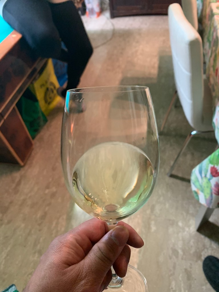 美味しいワインと食事をご馳走になりましたが、飲み過ぎて次の日は二日酔いでした。